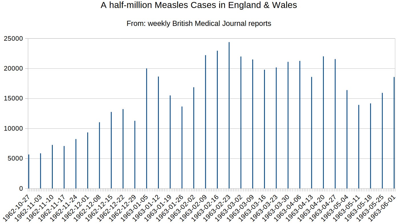 Here is one of the weekly reports which shows 24,000 measles cases in England and Wales and zero measles deaths in England & Wales: