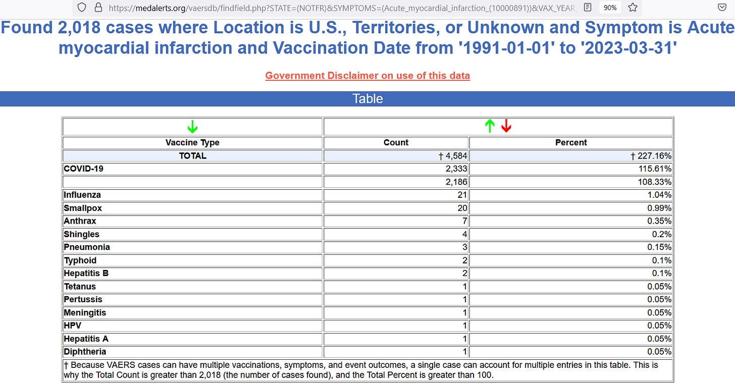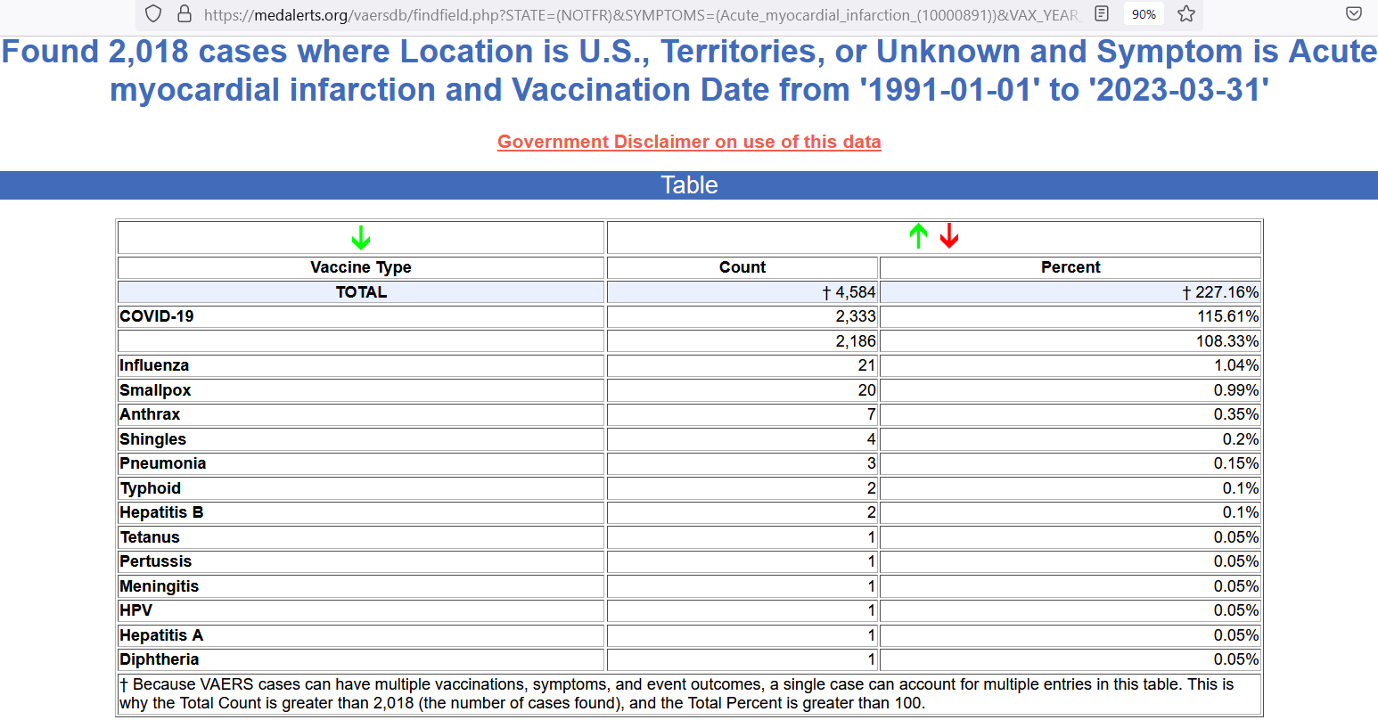 With 673 million COVID shots given in the USA up to March 2023, the reporting rate for Acute Myocardial Infarction is 3 cases per million doses, but the reporting rate for all other kinds of shots is well below 1 case per million doses — indicating that COVID shots are more than 3 times more likely to lead to heart attacks as other shots.