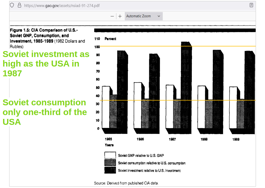 In the USA in 1987, we respected the rights of others, including property rights, while living under a Rule-of-Law, rather than living under the Rule-of-Man, like the Soviets did. In terms of goods and services affordable to us, we were 3 times better off. When not respecting the rights of others or not having a Rule-of-Law, then we stay primitive.