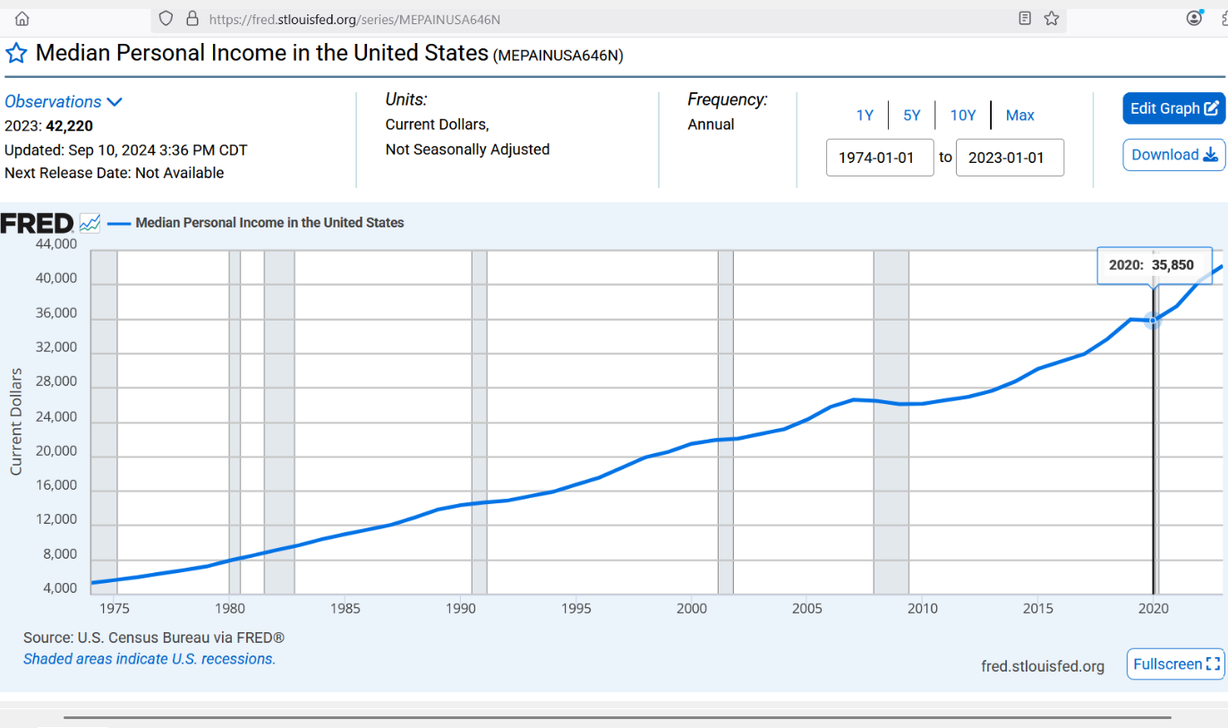 [median personal income in USA (2020): $35,850] — U.S. Census Bureau, Median Personal Income in the United States [MEPAINUSA646N], retrieved from FRED, Federal Reserve Bank of St. Louis; https://fred.stlouisfed.org/series/MEPAINUSA646N