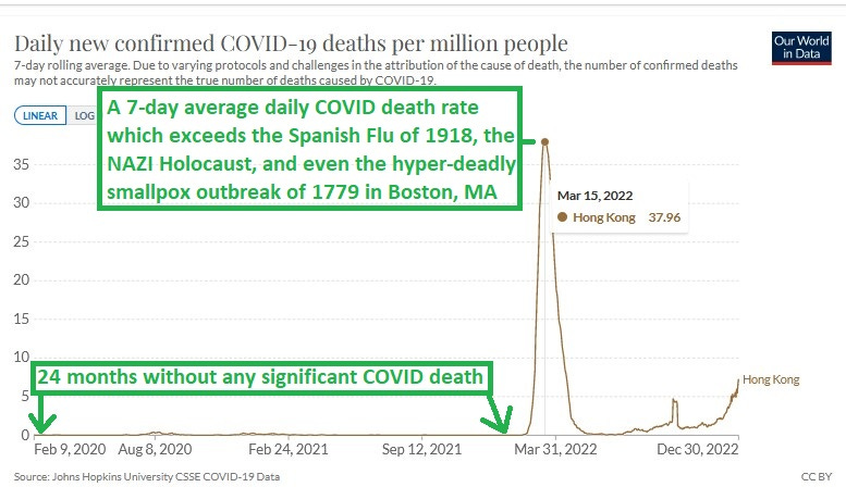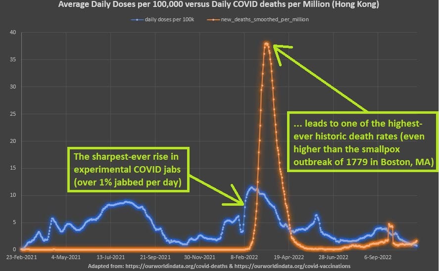 In the prior Substack, I went over how it is that the COVID injectable product appears to be fueling the pandemic in Japan. This follow-up focuses on Hong Kong. First look at how there never really was a pandemic in Hong Kong before COVID jabs rolled out: