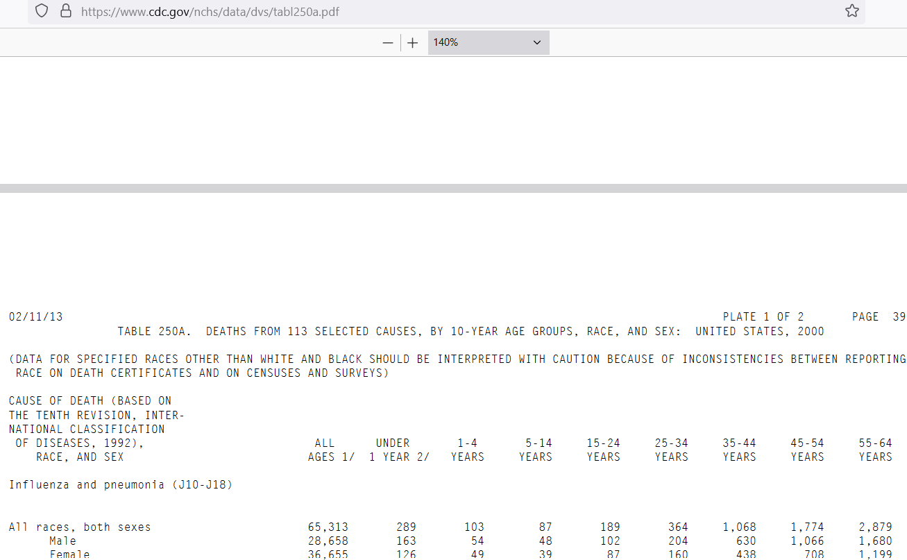 Back in the year 2000, 65,313 people (all races, both sexes, all ages) died from combined pneumonia & influenza (P&I):