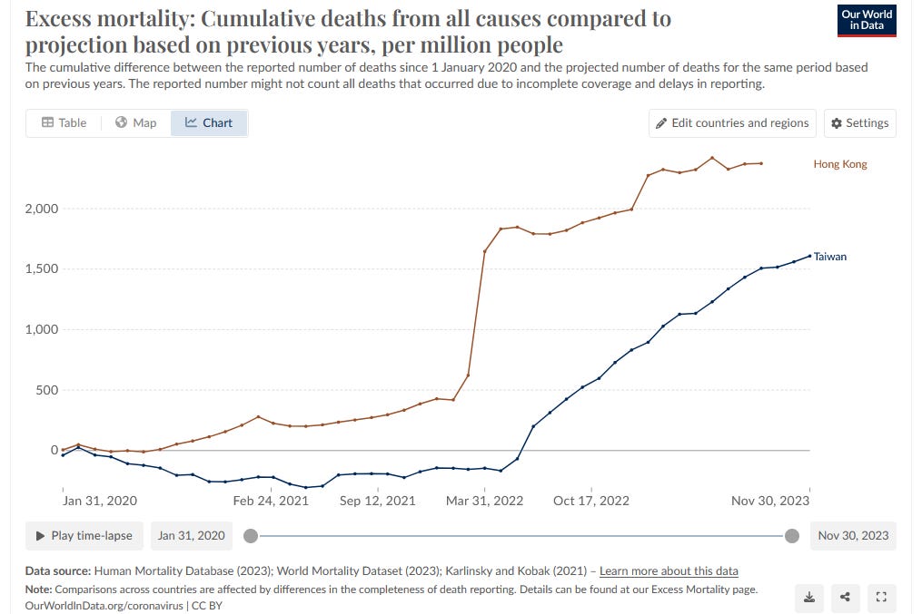 But check out the accumulation of excess death in Hong Kong and Taiwan: