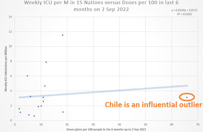 In this Substack, using Chile as an example nation, a statistically-significant increase in ICU admissions per million followed from having a higher share of the population COVID-jabbed in the 6 months prior.