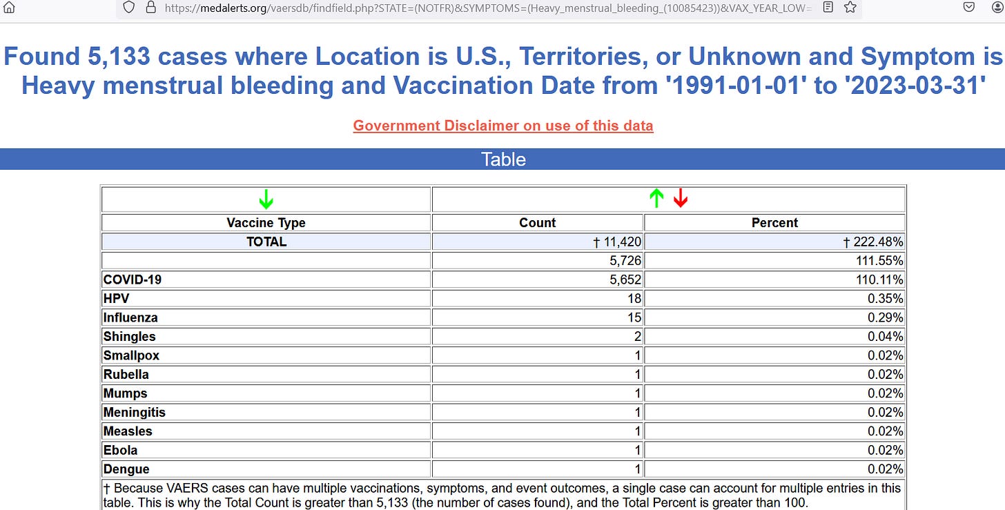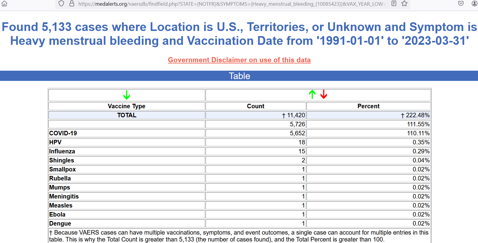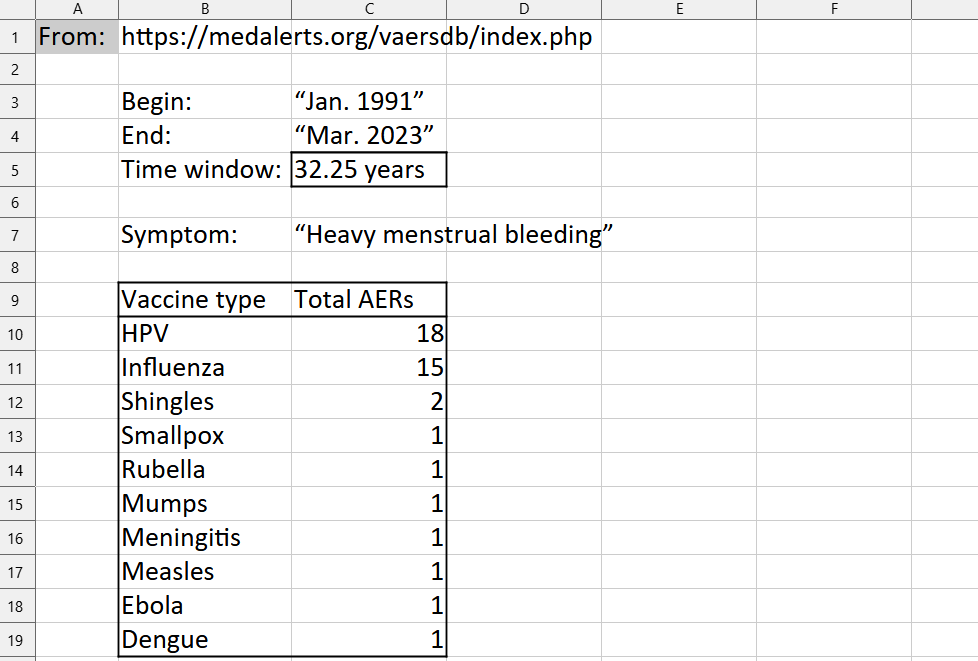 Here are the reports since 1991 that have been submitted to VAERS for “Heavy menstrual bleeding”: