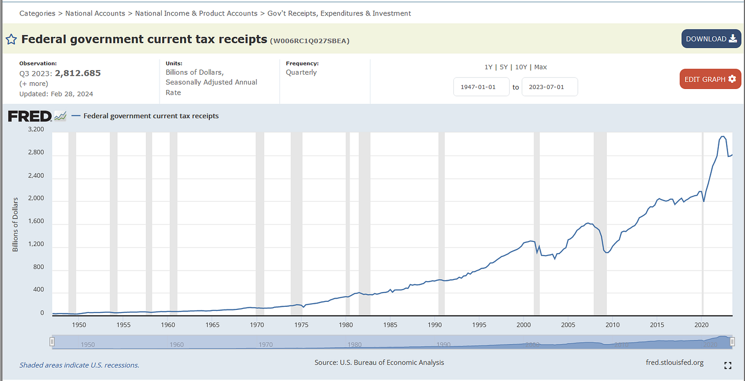 U.S. Bureau of Economic Analysis, Federal government current tax receipts [W006RC1Q027SBEA], retrieved from FRED, Federal Reserve Bank of St. Louis; https://fred.stlouisfed.org/series/W006RC1Q027SBEA