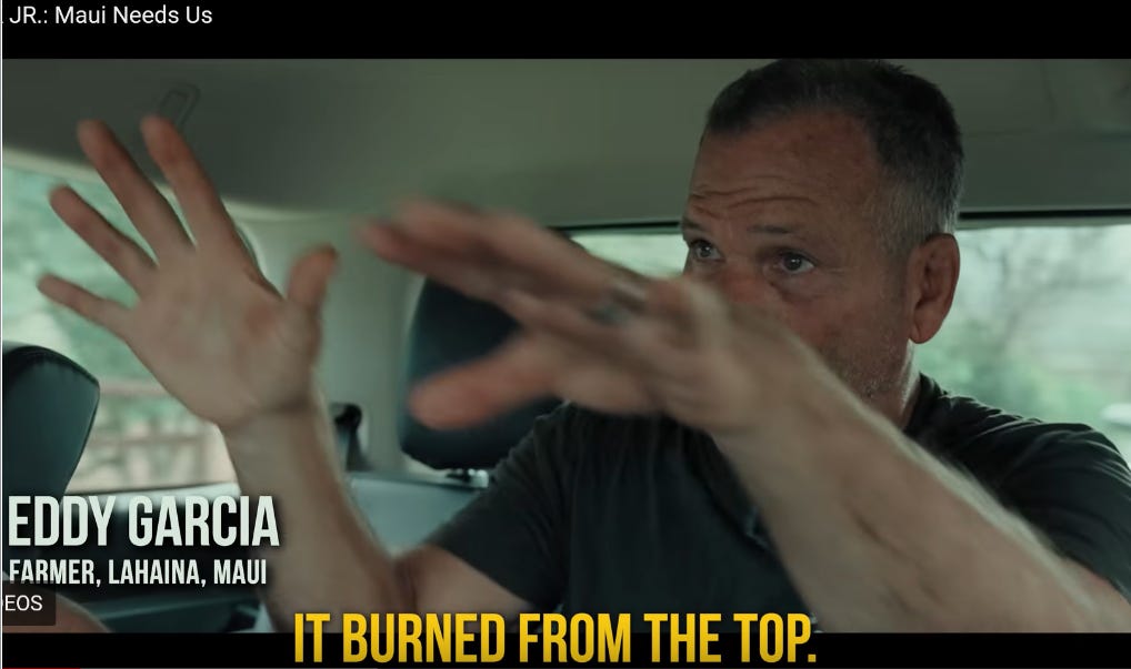 If directed-energy was aimed at Lahaina from the sky, then fires would burn from the top down, rather than burning from the ground up. When describing the fires, a farmer gave an eerie description: