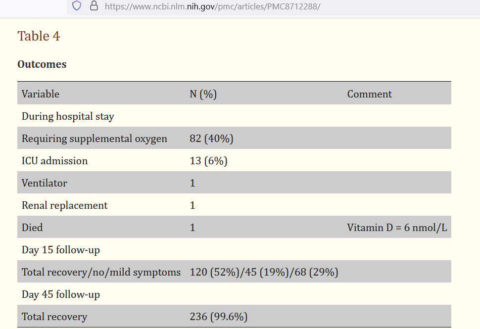 In Nov 2021, a study was published using a modification of the Zelenko protocol where there was additional vitamin D and, in one group, even intravenous vitamin C. They found phenomenal results in 237 hospitalized patients, with full recoveries in all but 1 patient, who died: