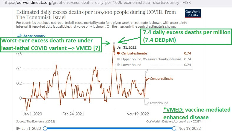 In a previous Substack, I showed circumstantial evidence of vaccine-mediated enhanced disease (VMED) by showing how the excess death rate in Spain under Omicron, the least-lethal of all COVID variants, went through the roof.