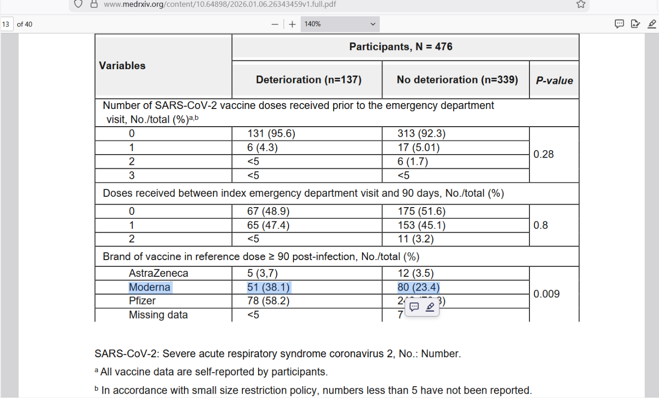 [51 of 131 people who took Moderna got even worse COVID symptoms from it] — https://www.medrxiv.org/content/10.64898/2026.01.06.26343459v1.full.pdf
