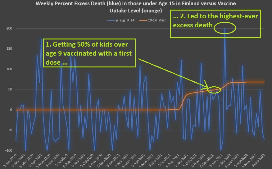 Even if non-significant, having a higher mean excess death rate and a higher peak excess death rate are a trend that is indicative that the COVID vaccine is NOT helping in keeping kids alive in Finland.