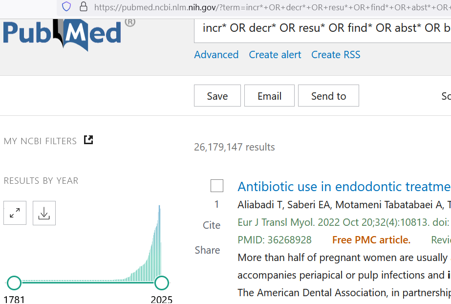 For perspective, here is a search performed with a search string of 4-character, truncated words designed to capture nearly all medical articles published in the English language: