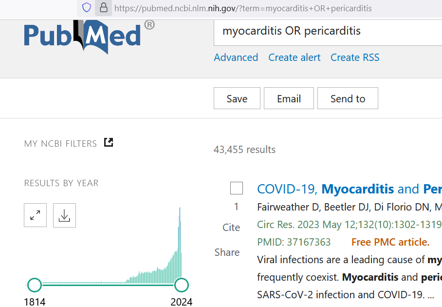 To find out if you introduced something which caused a lot of harm to people, you can examine the trend of publishing frequency for selected adverse events. Here are a few select adverse events that are most-likely caused by the COVID shots (note the spike in publishing frequency during COVID):