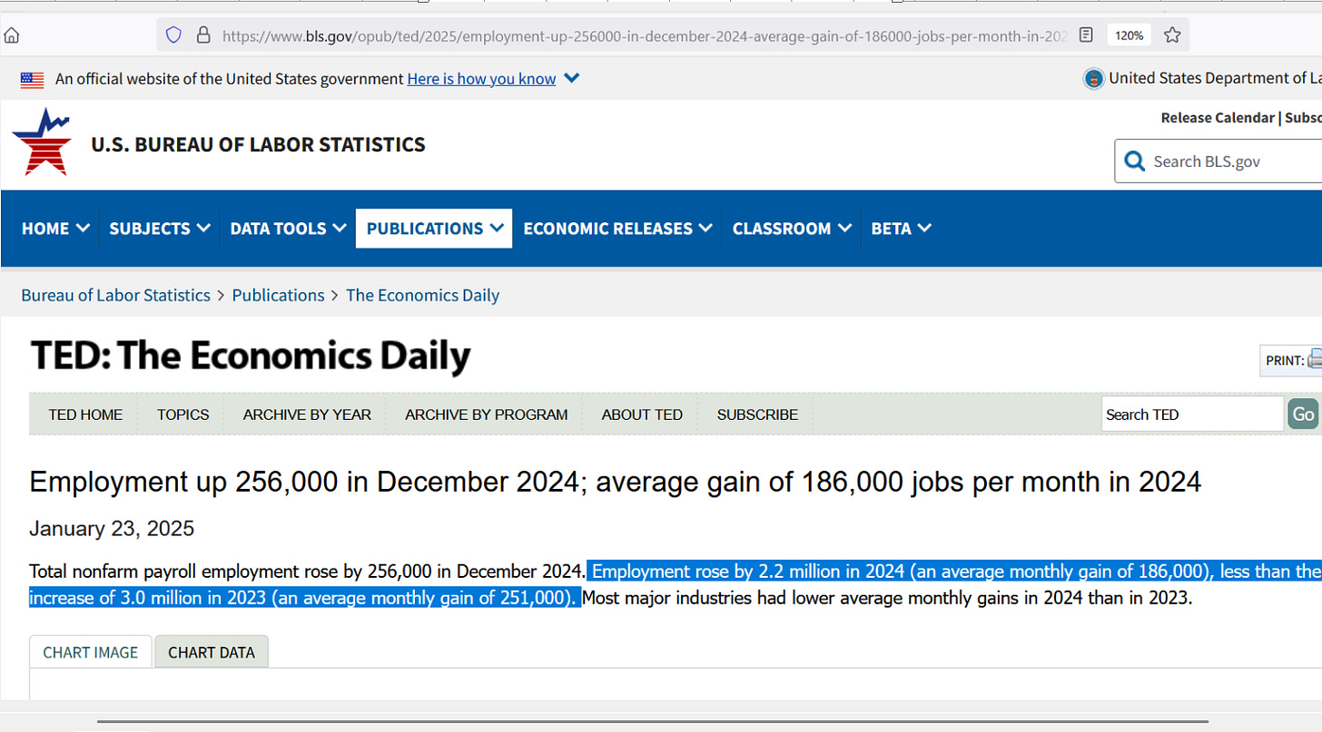 U.S. Bureau of Labor Statistics. Employment up 256,000 in December 2024; average gain of 186,000 jobs per month in 2024. https://www.bls.gov/opub/ted/2025/employment-up-256000-in-december-2024-average-gain-of-186000-jobs-per-month-in-2024.htm