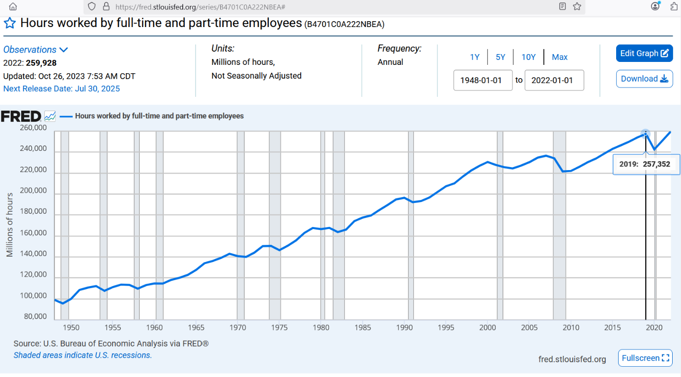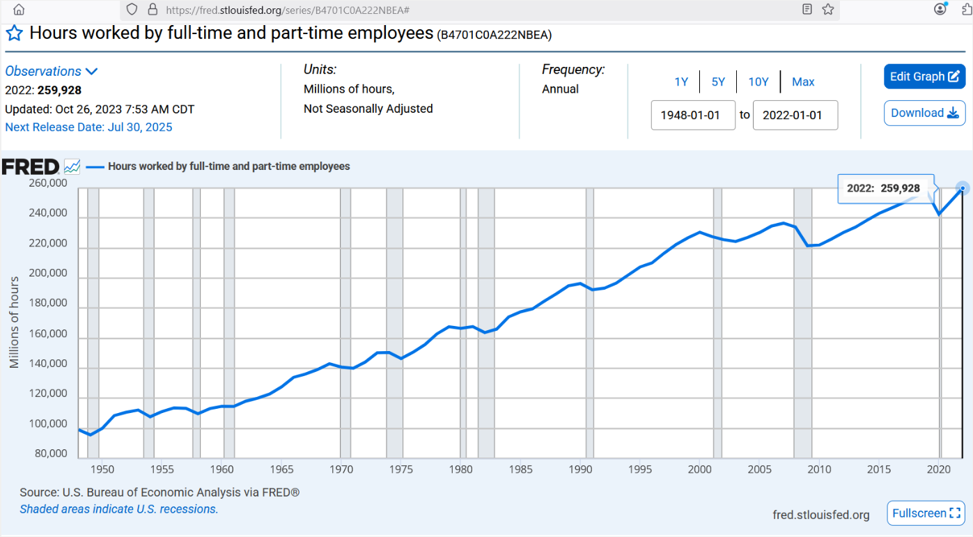U.S. Bureau of Economic Analysis, Hours worked by full-time and part-time employees [B4701C0A222NBEA], retrieved from FRED, Federal Reserve Bank of St. Louis; https://fred.stlouisfed.org/series/B4701C0A222NBEA