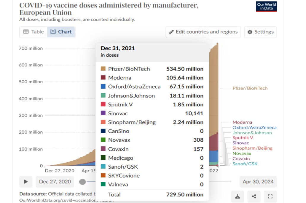 In the European Economic Area (EEA), there were 729 million COVID shots given out by the end of 2021: