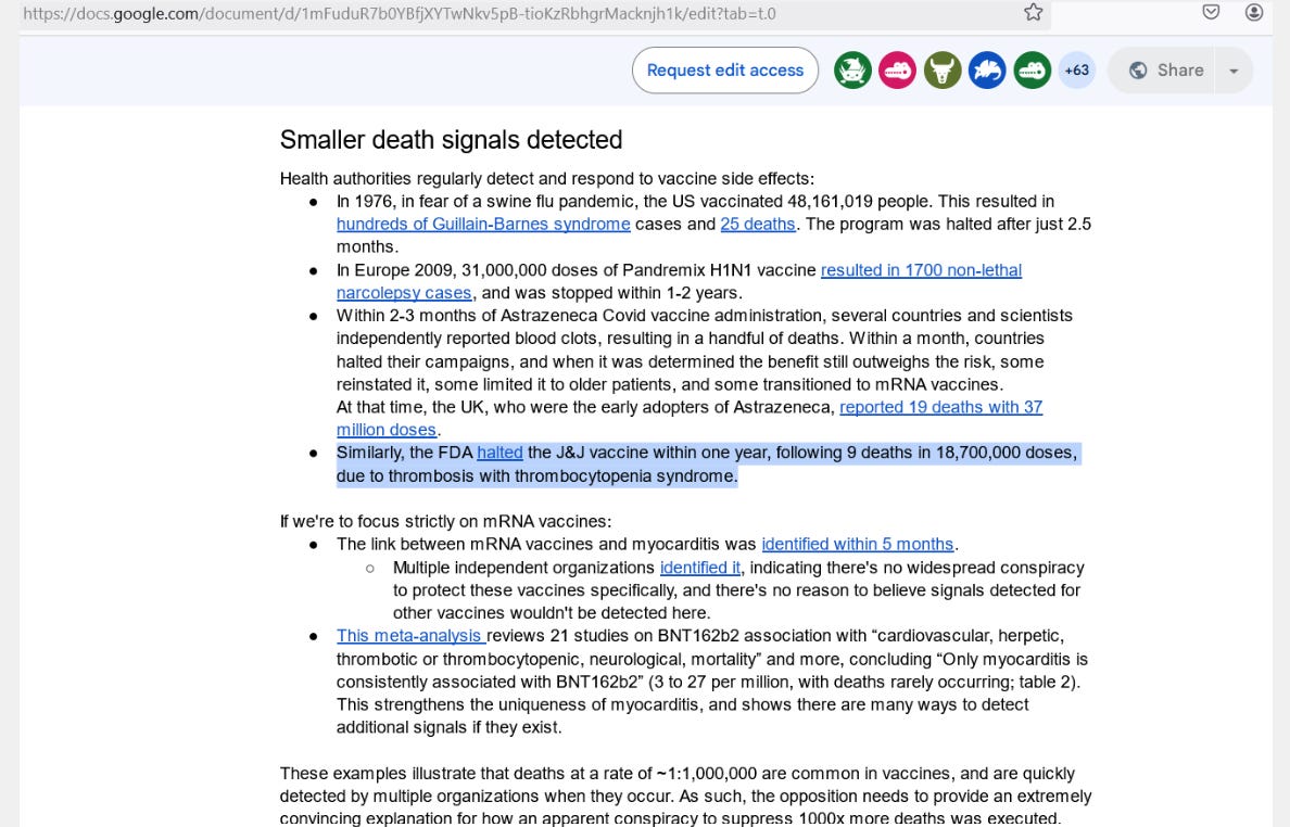 If FDA was willing to pull J&J over just 9 deaths, then people with claims of 1000x deaths (~9,000 deaths) must be lying, because the FDA would have pulled the other jabs, given how they pulled the J&J jabs after just 9 deaths.