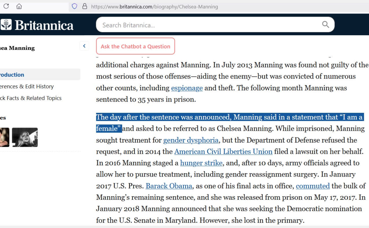[abrupt transition of Bradley Manning to Chelsea Manning] — https://www.britannica.com/biography/Chelsea-Manning