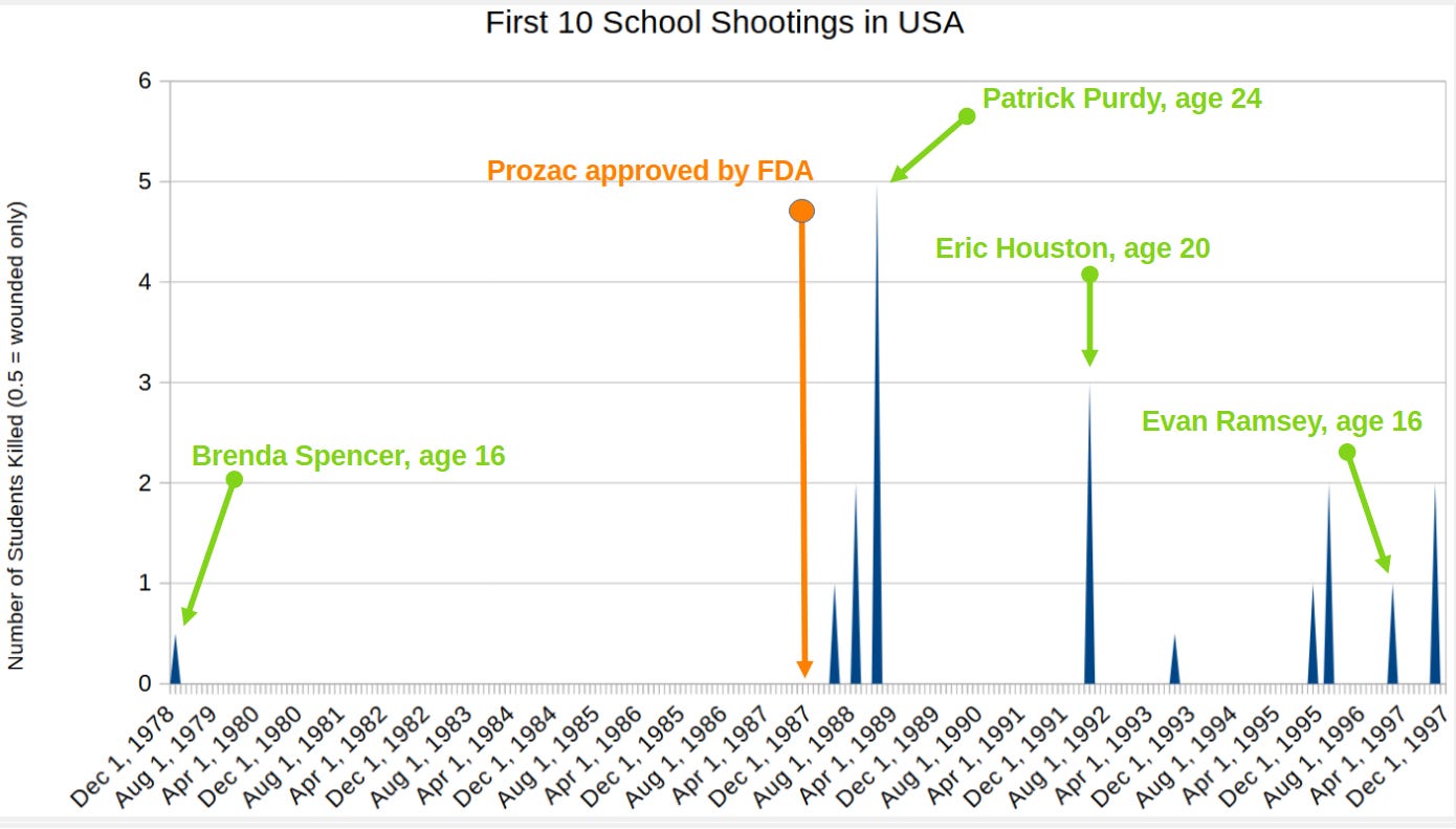 And the very next year, a flurry of school shootings began: