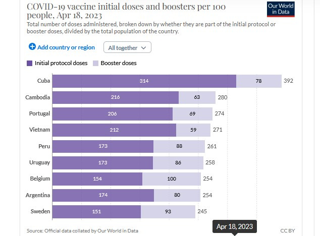 It is unclear how it could be that Cuba could reach more than 3 primary series doses per person if it only takes 2 primary series doses to become “fully jabbed.”