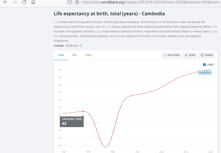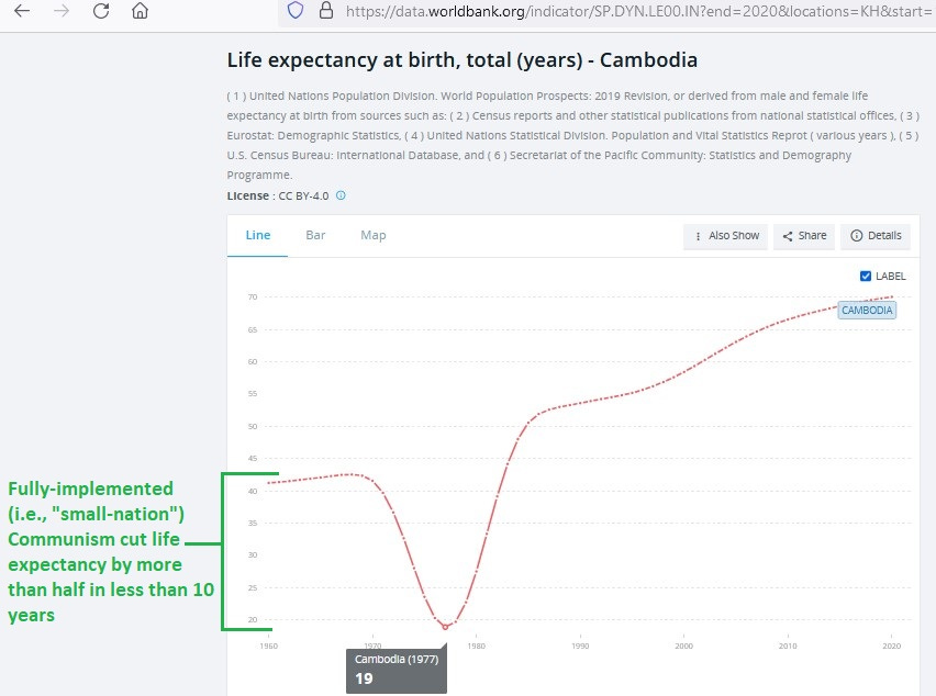 That’s Cambodia at bottom right and your eyes aren’t deceiving you. They lost over half of all of their life expectancy within a decade by fully-implementing communism.