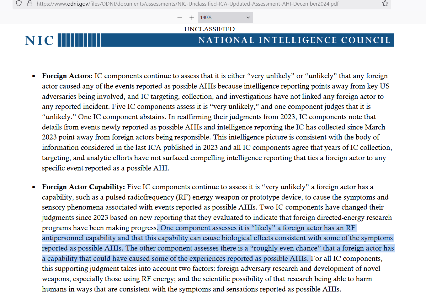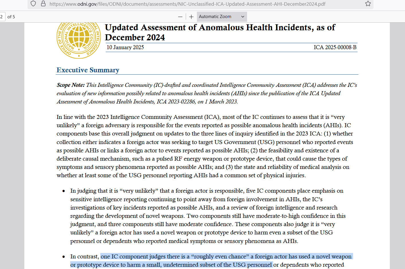 [update on anomalous health incidents] — https://www.odni.gov/files/ODNI/documents/assessments/NIC-Unclassified-ICA-Updated-Assessment-AHI-December2024.pdf