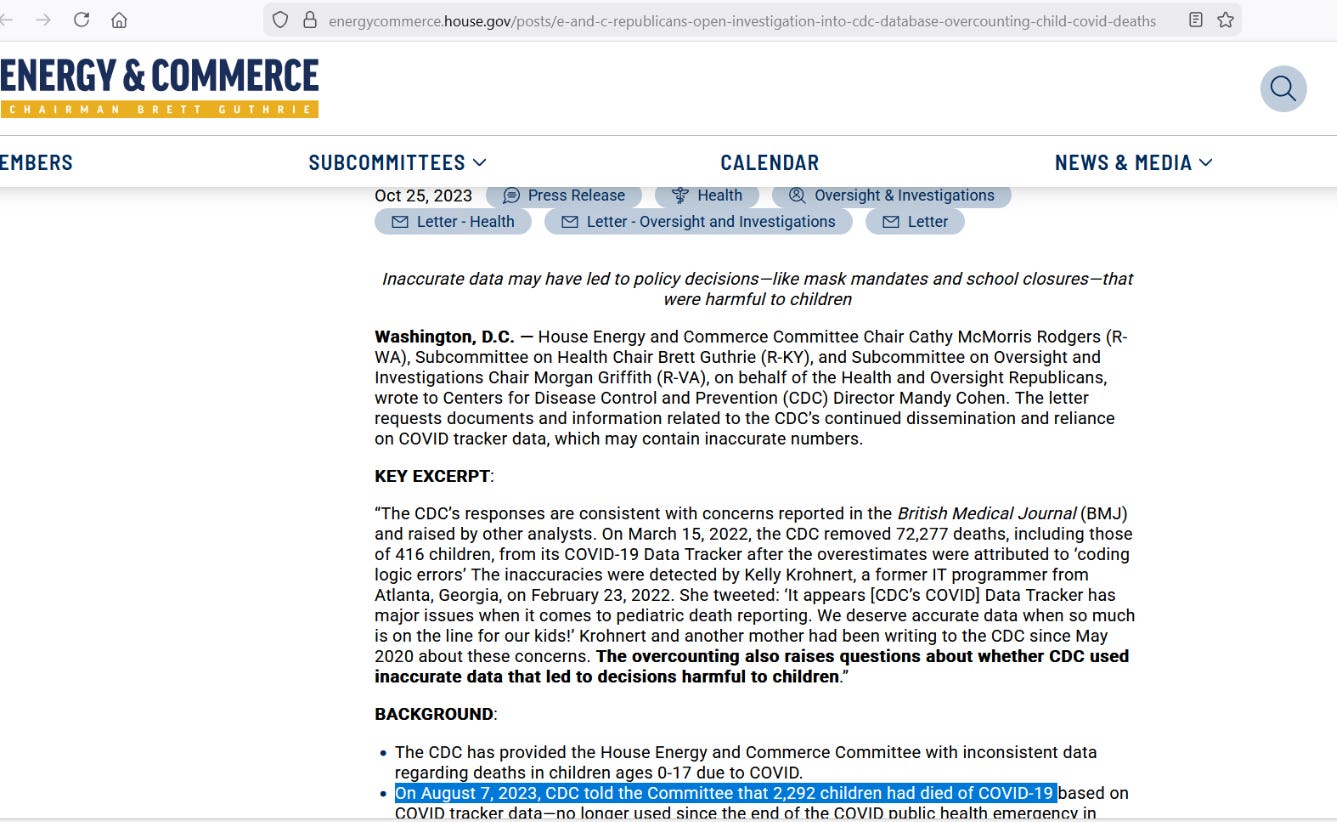 [CDC gave bad numbers to Congress] — https://energycommerce.house.gov/posts/e-and-c-republicans-open-investigation-into-cdc-database-overcounting-child-covid-deaths